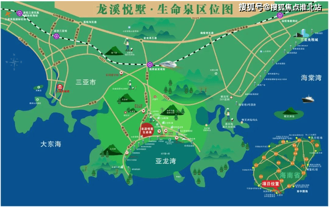 亚龙湾国际高尔夫球场、红峡谷高尔夫球场、 玫瑰谷、天堂热带雨林度假公园、最美公路太阳湾,红树林湿地保护区,亚龙湾海岸线等