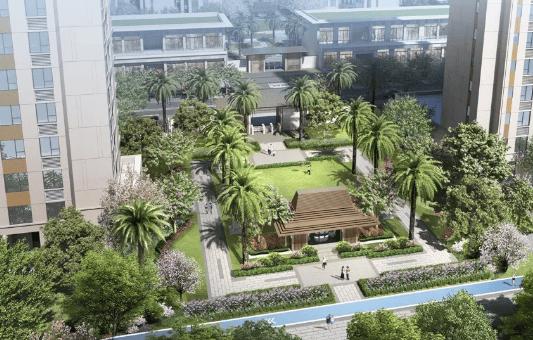 园林景观:以东南亚风情园林为特色,打造“一轴一环一带”景观布局,绿化率35%,营造自然舒适的居住氛围。