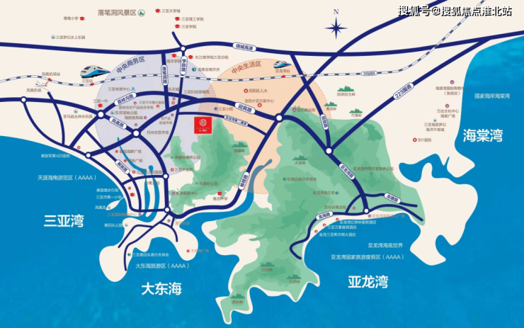 【生态配套】凤凰岭、海螺岭、大安岭、白石岭、白虎岭、三亚湾椰梦长廊、大东海4A级景区、天下第一湾亚龙湾,国家海岸海棠湾。