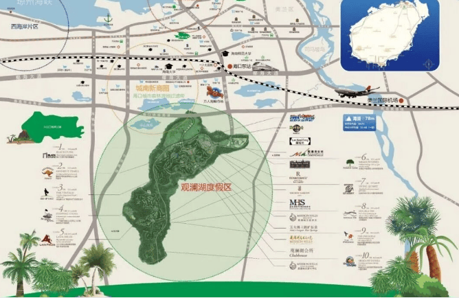 项目位于观澜湖核心商业区,紧邻观澜湖新城,周边有巴迪奥超市、奥特莱斯、狂野水世界、五星级酒店等丰富商业配套。距离高铁东站约10分钟车程,美兰机场约15分钟车程,交通便捷。此外,项目周边教育资源优质,海南华侨中学观澜湖学校、海南大学国际校区等为居民提供一站式教育服务。
