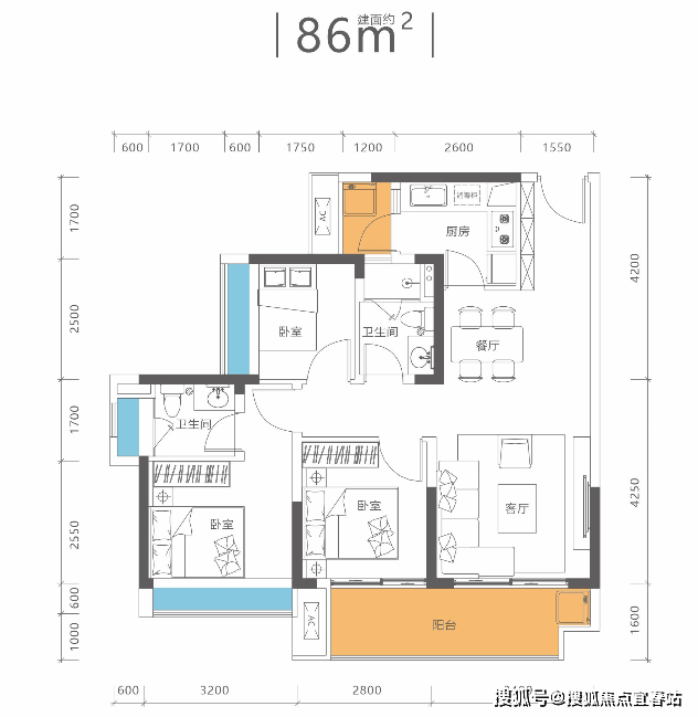 端头位:总赠送约270㎡,总面积达450㎡,赠送率160%;花园面积约100㎡