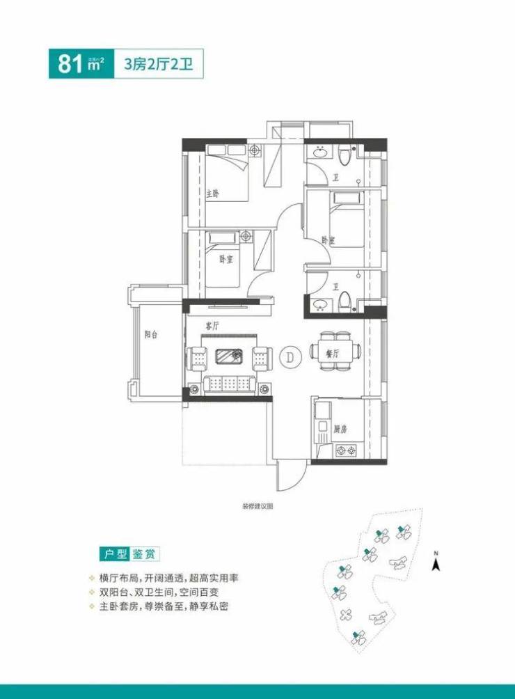 新品首推约81-97m2四-五房的高层产品,采光优越,拓展面积和使用率极高,目前市场上绝无仅有的稀缺户型。