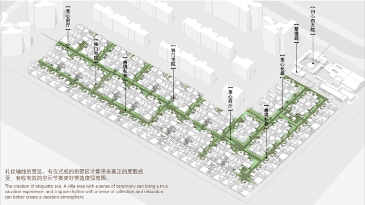 基于这样的自然优势,万科不是简单地将院子排布在水系旁,而是将院子设计成一个个簇拥在一起的“岛屿”,如同一个个岛屿环抱“水系”一样,有着环水岛居的意境。