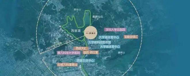 项目主打景观牌,高层西北侧眺望西丽湖,东南侧被深圳野生动物园(未来或搬迁坪山,原址或规划为高校用地)和高尔夫俱乐部环抱,远看塘朗山公园。项目周边自然环境优美,交通便捷,周边高校林立,人文气息浓厚,商业环境相对较弱,总体来说,较为安静宜居。