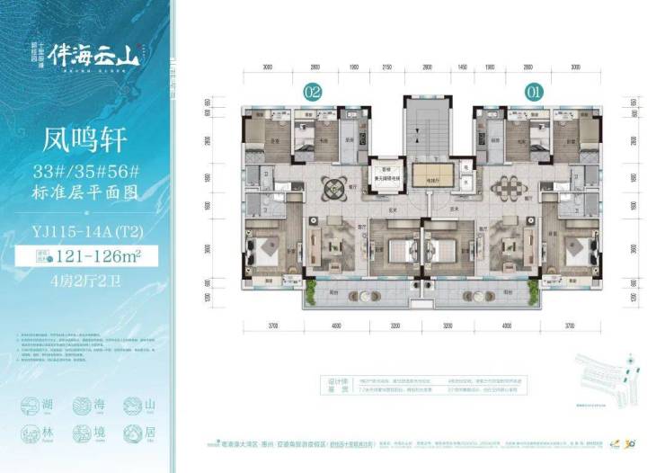 南向5.1米宽开间大客厅、四卧室观湖海景