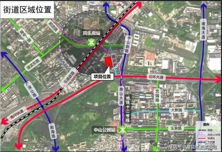 项目位于在南山与宝安交界处的南头片区中山公园北,即北环大道以北,南海大道以西,平南铁路以南,项目与周边环境相对独立,与豪方天际相邻。