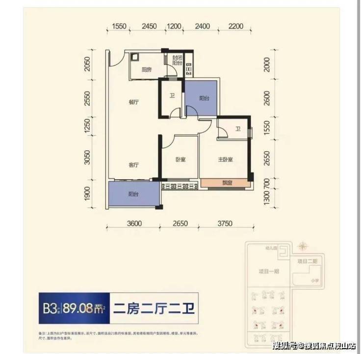 87-89㎡(2+1房二卫)朝南,折后总价80-83万左右/套,单价0.92-0.95万/㎡