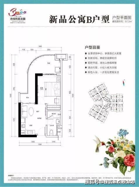 A户型:稀缺旅居产品,建面约58㎡,一房一厅一卫,干湿分离,L型超大阳台,尽享湖光山色;总价约70万起。