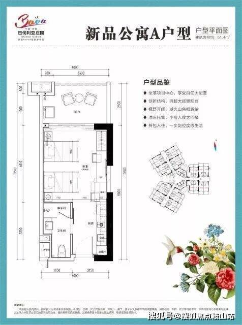 B户型:投资度假首选产品,建面约50-55㎡,一房一卫,10㎡超大阳台,超高性价比投资臻品;总价约55万起。