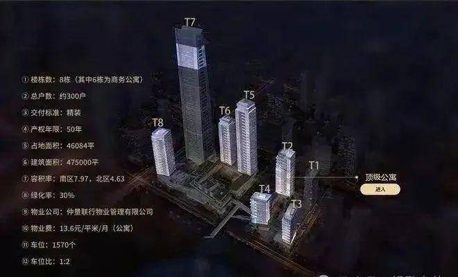 南区分为:T5、T6、T8公寓,T7为环球商务中心。