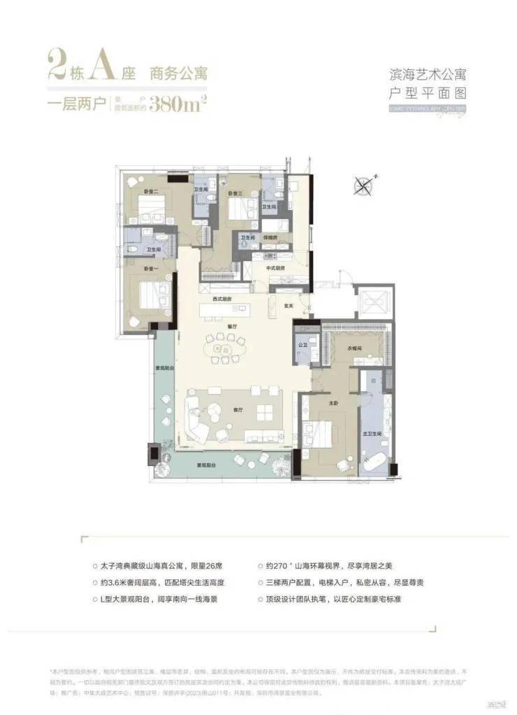 IMAX级横厅:9米开间+10米进深,270°L型阳台延展20米观景面