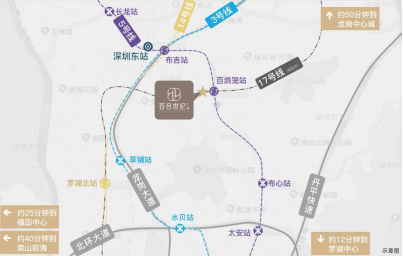项目作为双线地铁上盖物业,5号线百鸽笼站与社区无缝接驳,在建中的17号线也将在此站接驳。百合世纪广场售楼处电话 4009099108,1站可达布吉(深圳东站)换乘3/14号线,1站抵罗湖,4站至福田,7站达深圳北;1公里接驳龙岗大道,2.5公里直达丹平快速,水官高速、北环大道构建立体通勤网络。