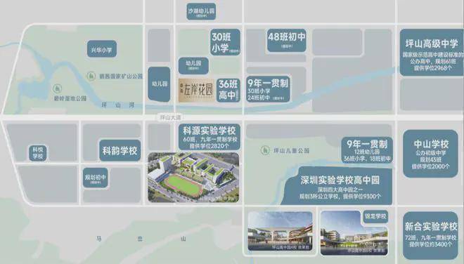 高中:深圳实验学校高中园、坪山高级中学。
