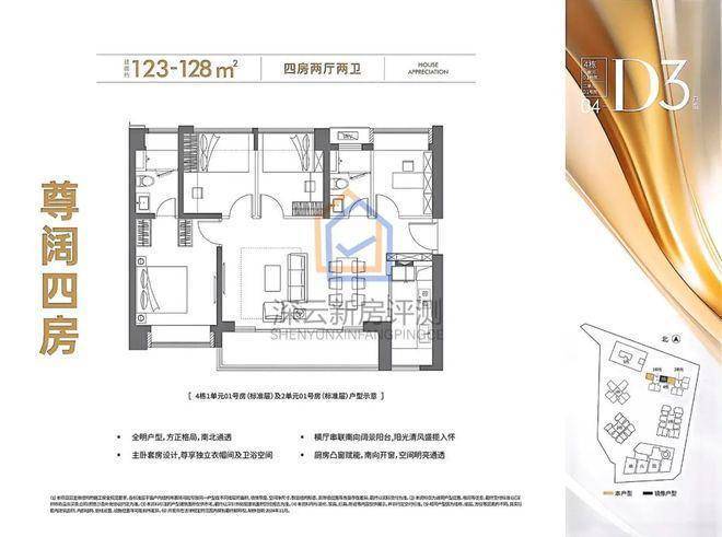 125㎡南北通透大四房,总价570万起。