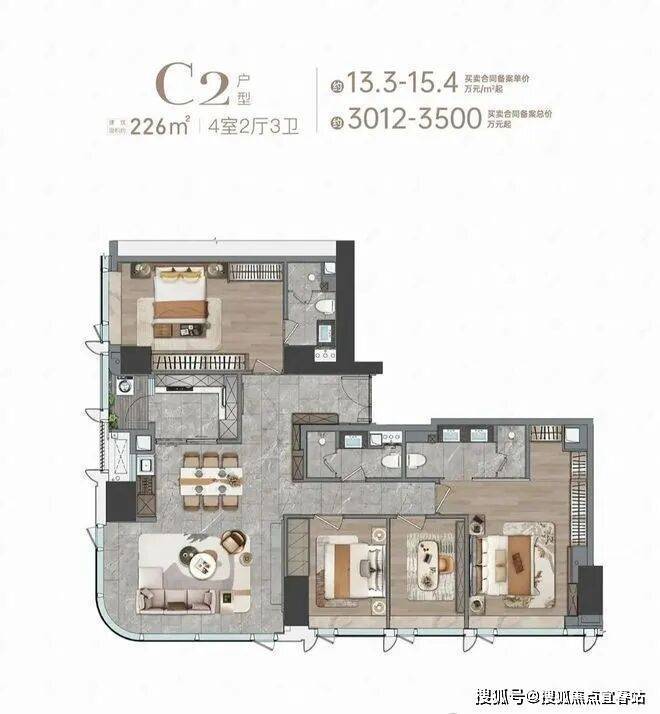 •主力产品:88-226㎡1-4房,部分户型可打通为620㎡复式;顶层415㎡起大平层,1270㎡户型可做6-8房,总价跨度1593万-5000万。