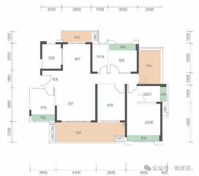 C户型] 121㎡ 4+1房 2卫,总价约127万