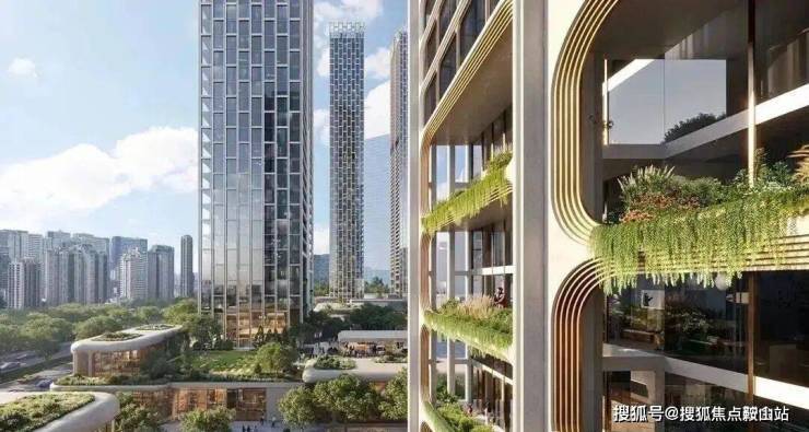 从效果图来看,外立面非常之有个性彰显。这是深圳从铝板玻璃幕的风格后又脱颖出来的一个新方向,也是进一步凸显出与过去老房子区别的鸿沟。