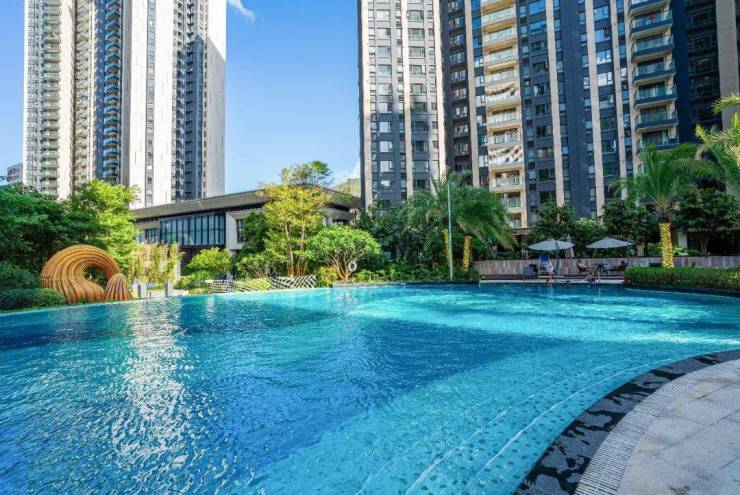 面积约2.2万㎡,5大核心主题景观,含1390㎡超大无边际双泳池,星级酒店泳池