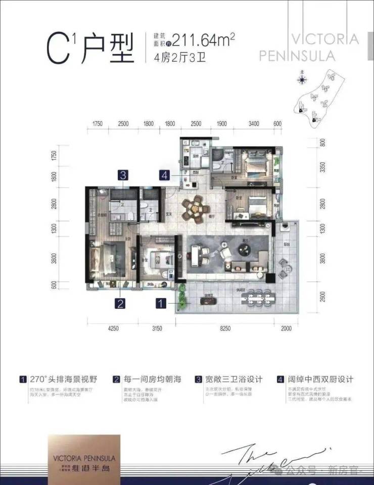 维港半岛在售建面约101-211㎡的精装大户型,2-3卫的设计,解决了抢卫生间的尴尬,同时也保证了主人生活的私密性,适合刚改、度假、养老等各种需求,每一款户型都融入了让人住得更好的小心思。维港半岛空中“别墅” 总裁级产品,全球发售,不得不推荐建面约211.64㎡瞰海空中美宅。