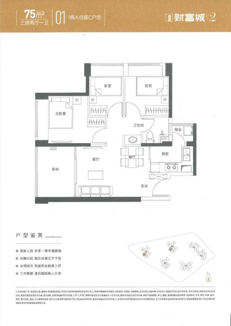 75m²三房总价188万~218万
