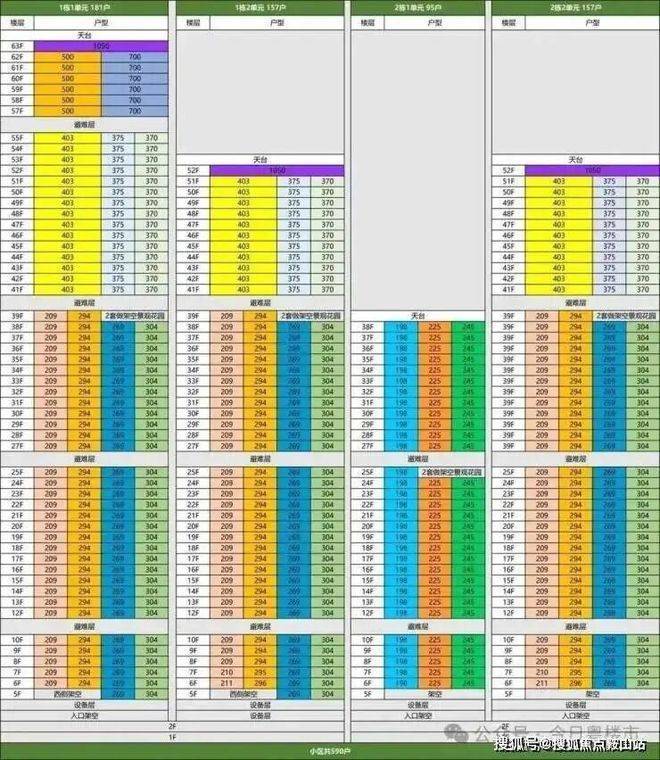 超高区58F起(200米以上)是约500-700㎡顶级大平层;