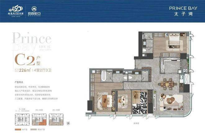 太子湾片区规划总建筑面积约170万㎡,总占地约69万㎡,汇集办公、居住、商业、艺术中心、酒店等多元业态。以“一湾三坊城中城”概念打造布局,在独一无二的太子湾滨海区,汲取山、海、城三大元素,构建高端“居住坊”、“商业坊”、“港务坊”。凭借独树一帜的规划与强大的枢纽功能,成就高端元素集萃纷呈的“城中之城。