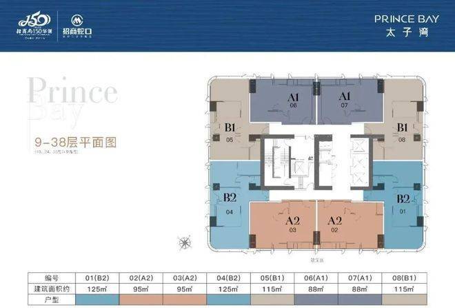 项目总高194米,共1栋,分为顶高低三个区域,低区9-38层4梯8户,面积为88-95-115-125㎡;高区39-48层4梯6户,面积为88-115-226㎡;顶层49-50层4梯4户,面积为216-226㎡ 其中88平目前已售罄。