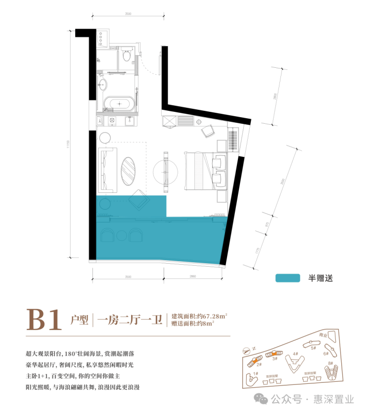 ⭐豪华型一房一厅瞰海产品:全海景横厅设计⭐