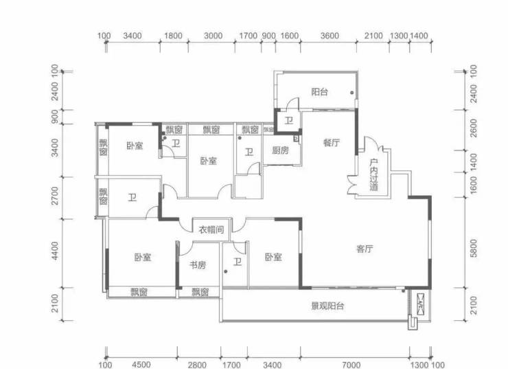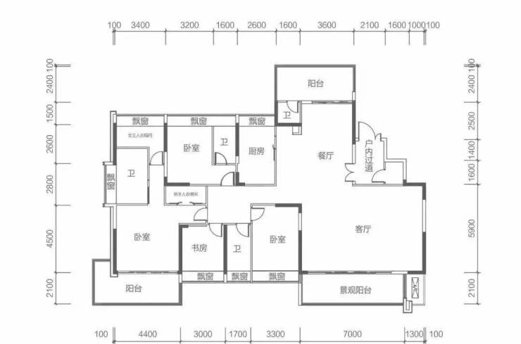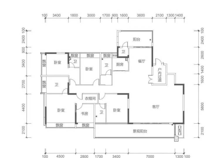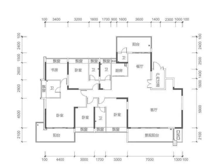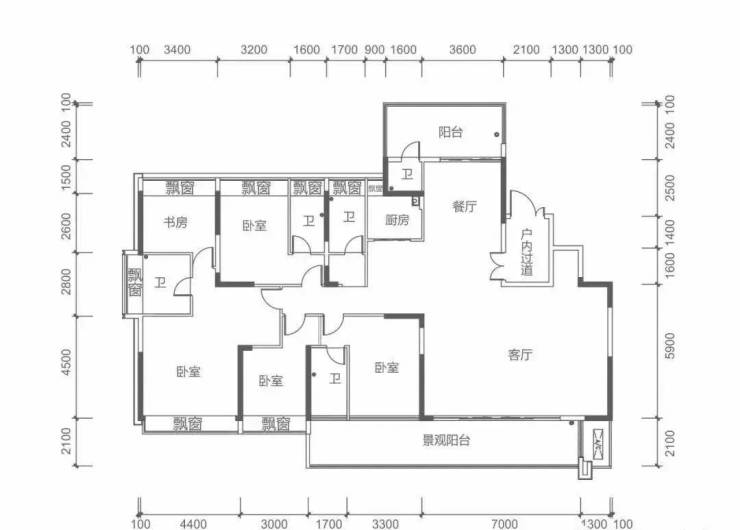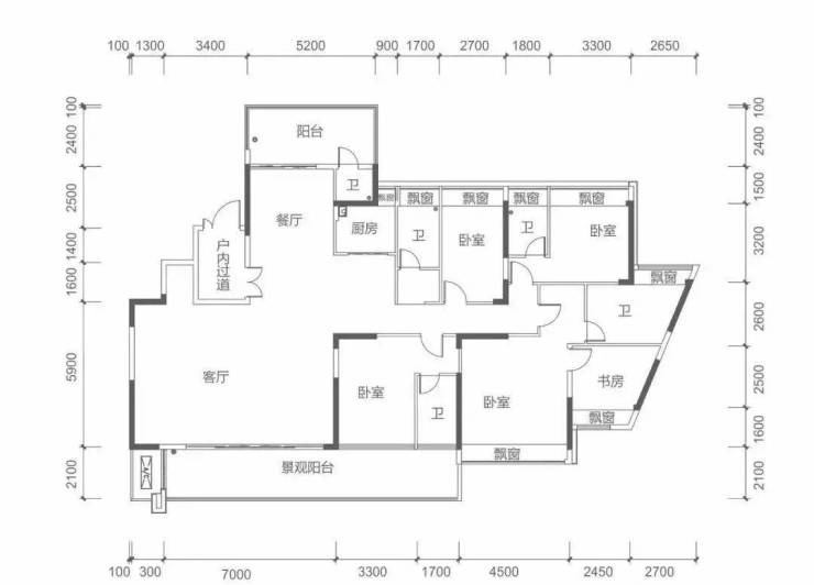 7栋奇数层 M户型建面约260㎡ 5房2厅5卫