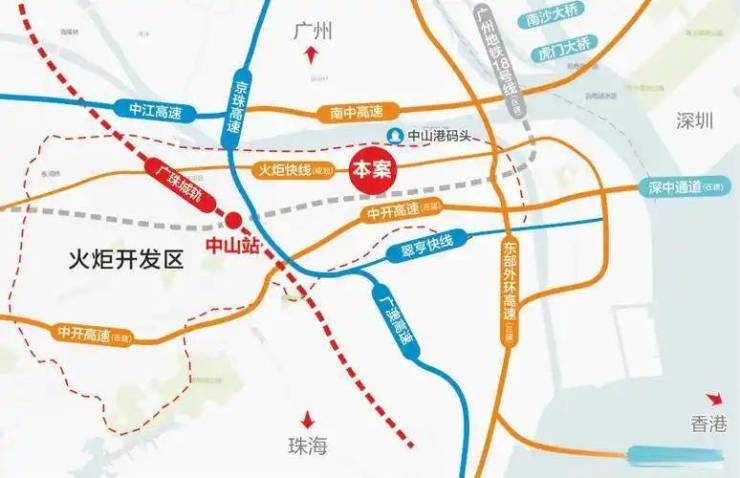 双轨交规划:南中城际火炬东站(在建)1.2km,广州18号线延长线(规划)3km