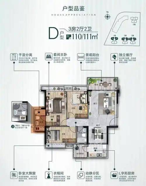 111㎡三房:南北双阳台+独立家政间,改善型需求首选
