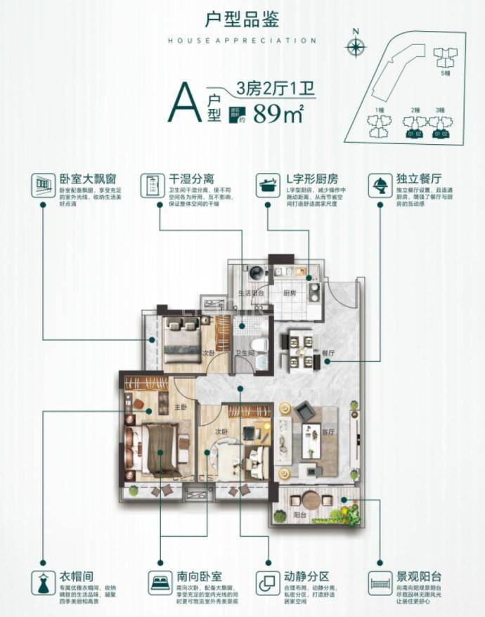 产品 320户纯住宅社区,主推89-111㎡精装三房(全三居户型)