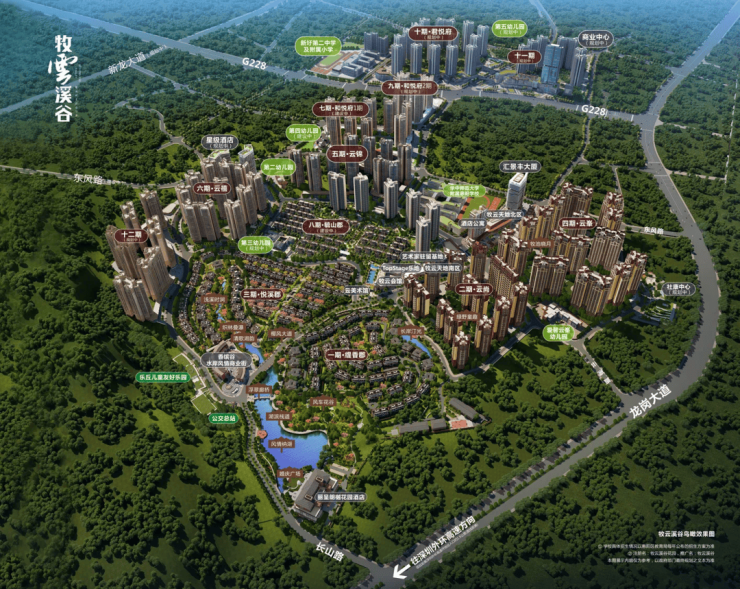 牧云溪谷位于惠阳新圩龙岗大道旁,和龙岗坪地一路之隔。小区建面有400多万平,是一个开发了近10年的成熟大盘。