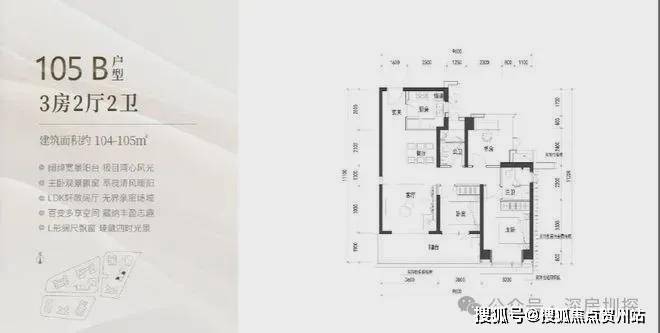 本次首推的 02 地块 105 ㎡产品有 4 条腿,户型有这个双龙抱珠的,还有一个户型是竖厅格局,各有优势,看个人喜好选择。