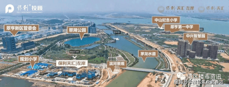 💎 保利天汇左岸:全中山最近深圳!保利天字系平层,2T4户设计,通风采光极佳!北临翠湖公园,东望茅龙水道,位置优越!