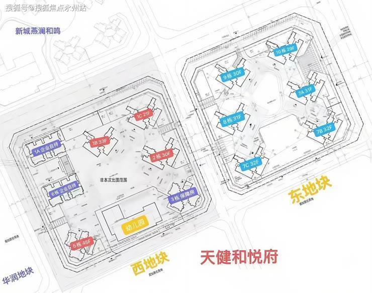 东地块,总占地面积约2.26万㎡,总建筑面积约14.43万㎡,计容建筑面积约10.37万㎡,容积率4.5,绿化率40%,共由6栋总高29-32层的住宅组成,其中7栋A单元住宅31F,7栋B/C单元住宅32F,8栋住宅31F,9栋住宅30F,10栋住宅29F,规划有公交首末站,社区菜市场,总规划1052户。