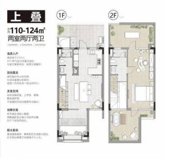 【产品面积】110-124㎡平层,两室两厅两卫