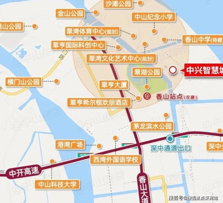 中兴智慧城懿禧府距离中山侧第一个出入口——翠亨东约800米,临近在建的南中城际香山站。
