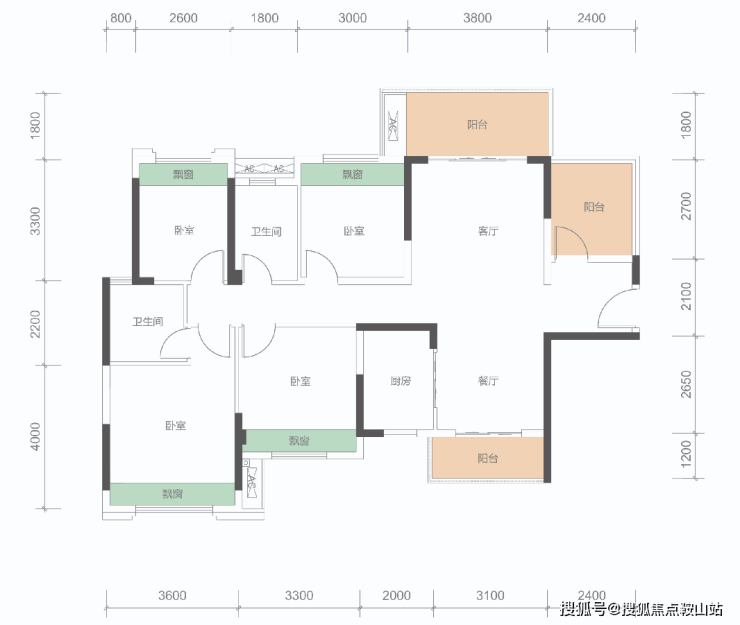 墅质级4+1房、南北双阳台(主阳台超7米)