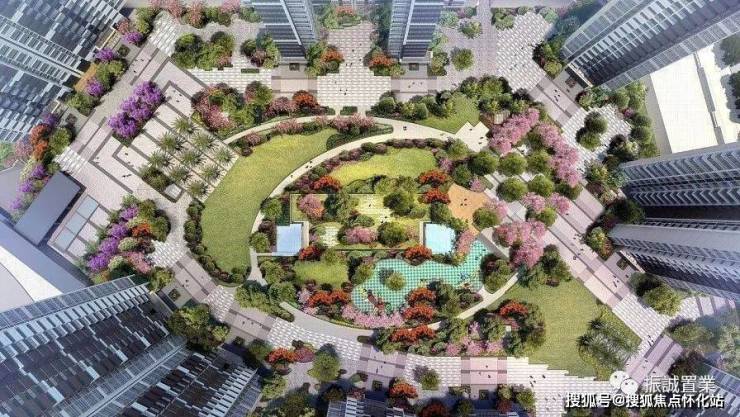 小区内5萬㎡私家園林、1 300㎡中央泳池、架空層主題泛會所、兒童樂園、康養健身區、活力 跑道、寵 物角等。
