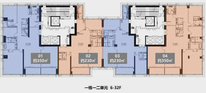 • 几梯几户:一期一二单元6-32层为3梯2户,33-38层为3梯1户;三四单元6-22层为3梯2户,24-32层为3梯2户,33-38层为3梯1户。二期17-43层一层6户,45-57层一层4户。