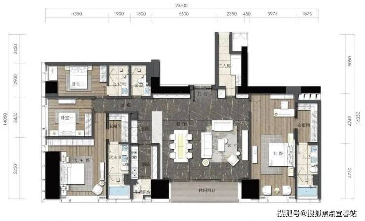 约164㎡2房2厅2卫(独立入户玄关,动静分离,约33㎡豪华主卧,承载品质生活)