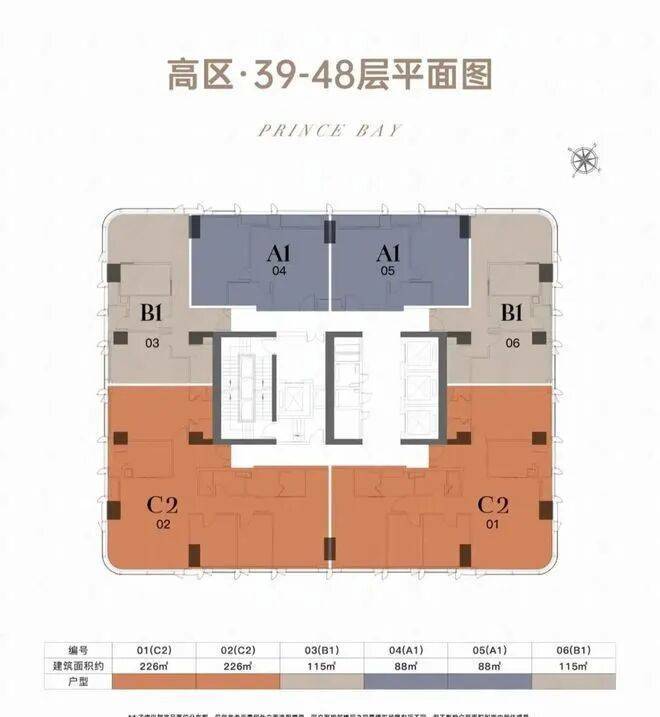 •建筑形态:194米超高层塔楼,共50层,分为低区(9-38层)、高区(39-48层)及顶层(49-50层),梯户比从低区4梯8户到顶层4梯4户逐级优化。