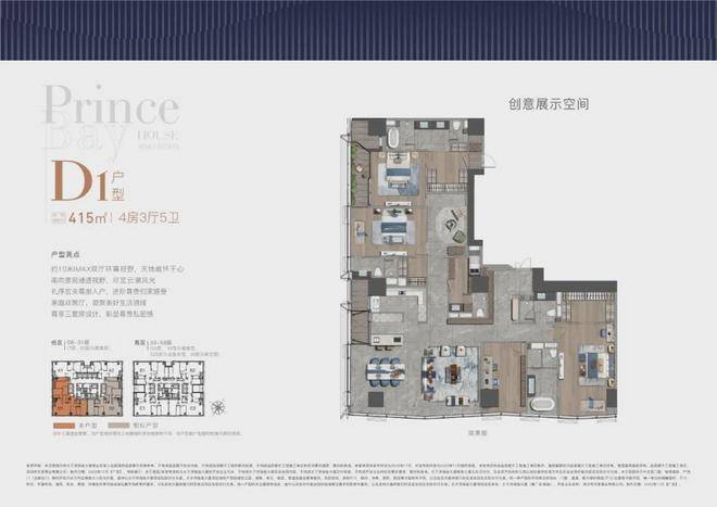 大平面大尺度定位,全户型纵享环幕视野。项目打造主力建面约308-415㎡纯粹品质公寓共191席,顶层为建面约1280㎡公寓产品。