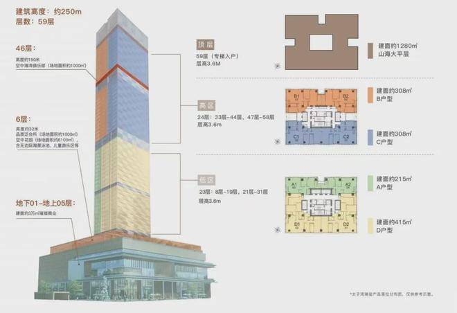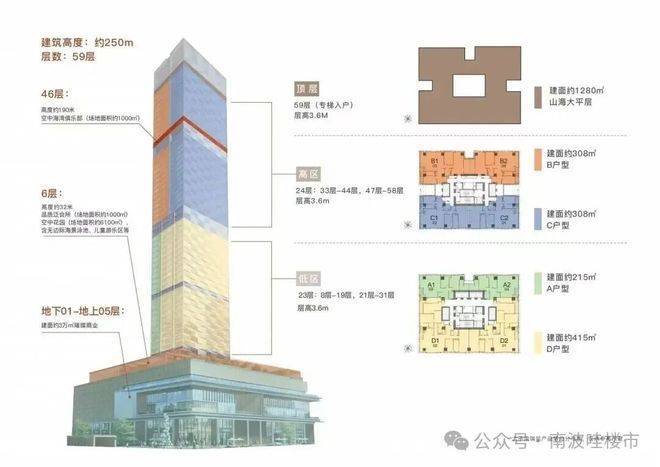◎建筑总层数:地下01-地上05层为商业、地上08-59层为品质公寓