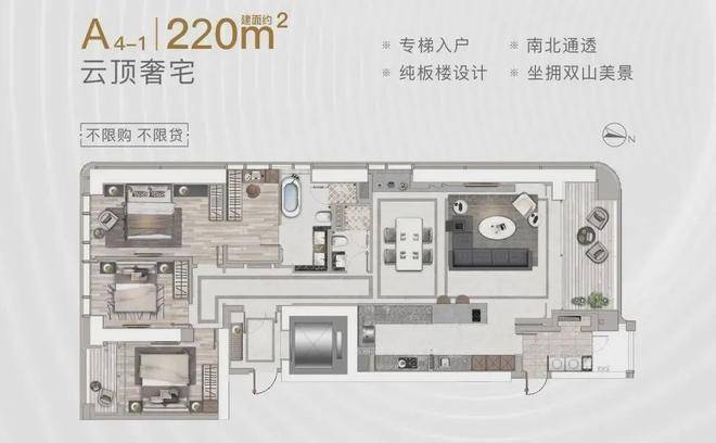 A座:建筑面积约160-220㎡2-3房(南北通透,专梯入户)
