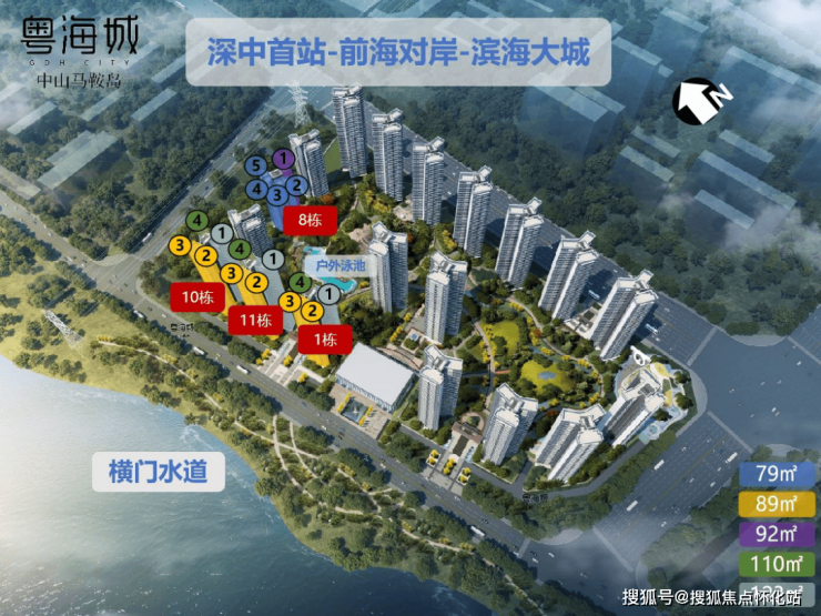 中山粤海城位于马鞍岛北部,紧邻深中通道第一出口,一桥可快速通达前海。将打造为约31万㎡大型低密双园林滨海大城,尊享马鞍岛内约900米一线海景,打造具备国际质感的缤纷海岸风景,拥有一处享受海洋的最佳空间;茶余饭后和家人悠然漫步约10万㎡度假式花园,与大自然拥抱;项目自建约2600㎡幼儿园教育配套,让孩子成长无忧;匠心设计建面约78-120㎡一线滨海品质奢宅,满足不同家庭的生活需求。