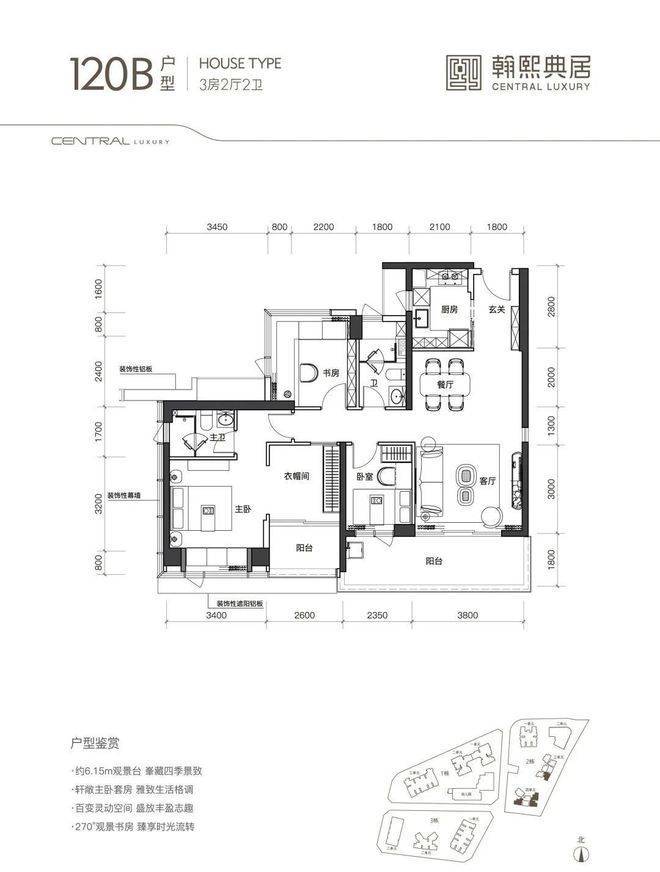 117㎡的3房2厅2卫,B户型(2栋4单元01.02.05/3栋2单元02/05户型),设计的是经典竖厅格局,客厅3.8米开间,LDKB一体化设计,3个卧室分别做到了主卧28.6㎡/次卧9.6㎡/次卧7.05㎡(包含墙体飘窗),客厅连接次卧出6.15米长的宽景大阳台,U型厨房,卫生间干湿分离,得房率约90%(包含赠送),东南或正东朝向。其实也可以改4房。120㎡的4房2厅2卫,C户型(2栋3单元01户型),设计的是竖厅格局,客厅3.85米开间,LDKB一体化设计,动静分区,4个卧室分别做到了主卧16.65㎡/次卧9.9㎡/次卧9.16㎡/次卧6.3㎡(包含墙体飘窗),客厅连接次卧出6.1米长的宽景大阳台,U型厨房,卫生间干湿分离,得房率约90%(包含赠送),西北朝向。117㎡的4房2厅2卫,D户型(3栋2单元06户型),设计的是横厅南北通透格局,客餐厅6.6米开间,四开间朝南,4个卧室分别做到了主卧17.35㎡/次卧9.8㎡/次卧9.1㎡/次卧8.05㎡(包含墙体飘窗),客餐厅出6.6米长的宽景大阳台,U型厨房,公卫三段式分离,得房率约90%(包含赠送),西南朝向。