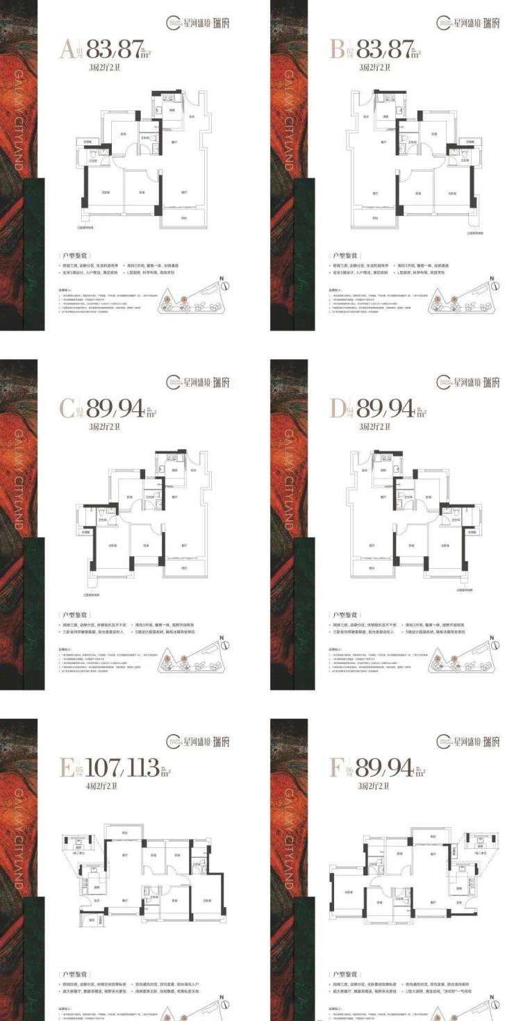 本次即将入市的星河盛境瑞府,总占地面积约1.83万㎡,总建筑面积约13.12万㎡,共由4栋31-47层高住宅组成,其中1栋1单元商品房41F,1栋2单元商品房31F,2栋1/2单元回迁房47F,3栋是1所幼儿园,总规划848户,其中可售商品房364户,回迁房有484户。