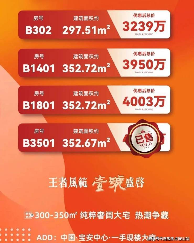 新锦安壹号公馆产品面积为250—350平米的顶豪大尺度户型,分别为1A和1C的250平米、2A和2B 的300平米和1B的350平米。所有楼栋均为五梯两户,全部采用3m/s的三菱电梯,快速直达,同时主佣分梯,保证私密性,远超顶豪市场两梯两户的配置,开创深圳市场梯户比新标杆。